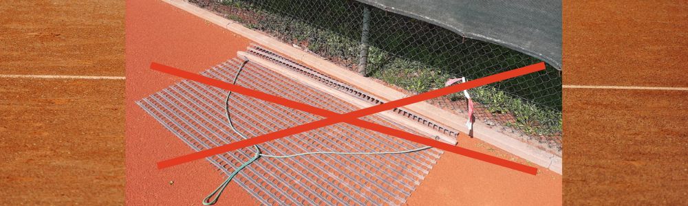 Onze Prestige gravelbanen liggen 'op afschot': met aan de 'lage kant' een afvoergoot voor het water.